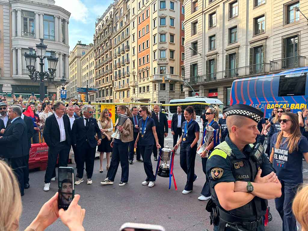 El domingo por la tarde, las campeonas fueron a celebrar la Champions en la Plaza Sant Jaume, junto a miles de aficionados que querían compartir con ellas su alegría.